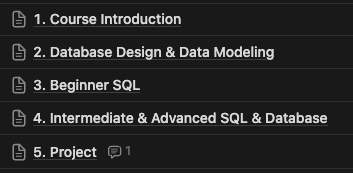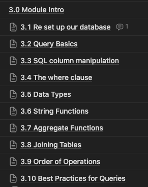 For example, here are the sub-modules for Module 3 → Beginner SQL: